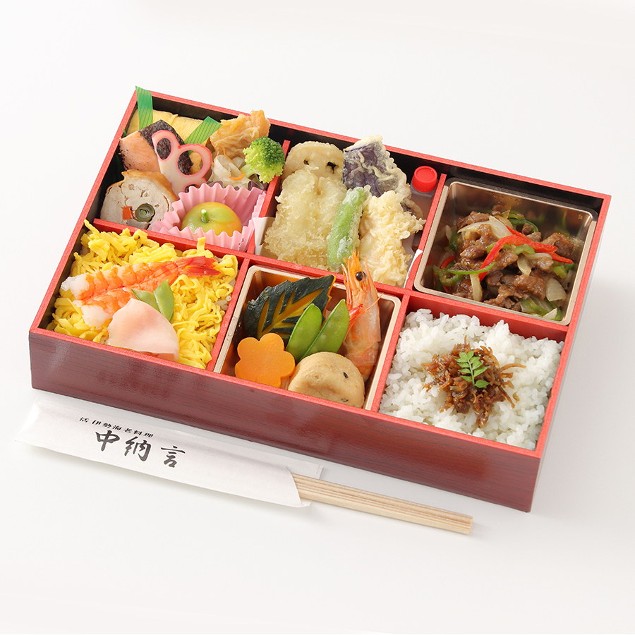 | 弁当内容 | ※季節の味わい弁当は、春(3月−5月)夏(6月−8月)秋(9月−11月) 冬(12月−2月)で内容が変わります。詳しくはお問合せください。 冬のお弁当: 「国産牛青椒焼肉風」 「伊勢海老と河豚の天麩羅」 「手作り出し巻」 「焼魚」 「鯛の南蛮漬け」 「鶏三色巻」 「甘味」 「炊き合わせ」 「ちらし寿司」 「ちりめんご飯」 (仕入れ状況により内容が変更する場合があります) |
